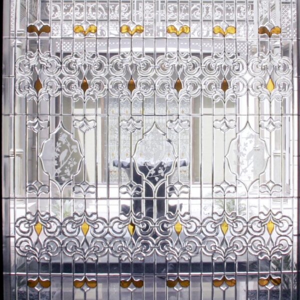 Stained glass doors and window panels are exquisite elements of architectural design that add both beauty and functionality to a space. Stained glass doors and window panels are appreciated for their artistic expression. They often feature intricate designs, vibrant colors, and various motifs that can range from religious and floral patterns to geometric shapes and scenes from nature. Similar to stained glass lamps, these doors and panels are crafted from individual pieces of colored glass. The glass is often chosen for its ability to transmit light while providing a range of colors and textures. The pieces are held together using lead caming or copper foil, depending on the chosen assembly technique.