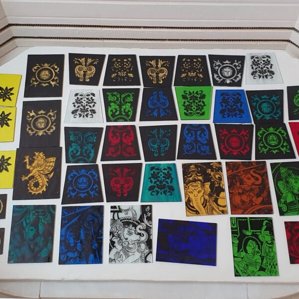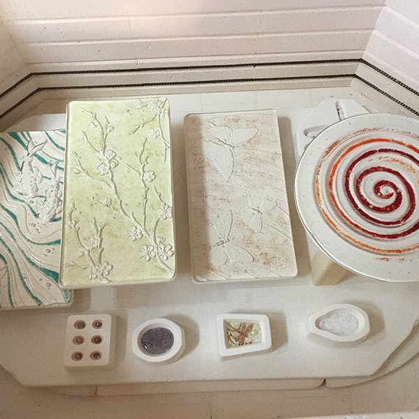 Kiln work, also known as kiln-formed glass or warm glass, is a process of shaping, fusing, or manipulating glass using a kiln. A kiln is a high-temperature furnace used for various heat treatments, such as annealing, drying, or hardening. In the context of glass art, a kiln is used to heat glass to a temperature that allows it to become soft and malleable. Artists can then manipulate the glass to create different shapes, textures, and patterns. Slumping involves heating glass until it softens and then allowing it to ‘slump’ or sag into a mold, taking on its shape. This technique can be used to create items such as plates, bowls, and other glassware. Kiln carving involves placing a pattern or design made from a heat-resistant material on a glass sheet. The glass is then heated in a kiln, causing it to soften and slump over the pattern, creating a raised or textured design.