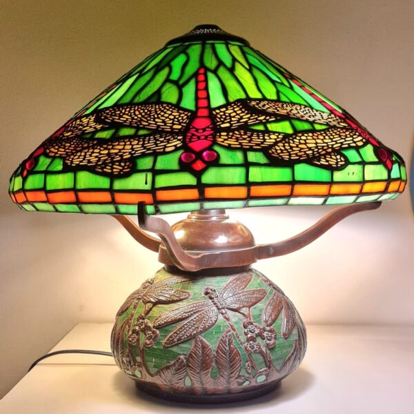 Stained glass lamps are beautiful decorative items that feature intricate designs made from colored glass pieces. These lamps are known for their vibrant colors and the way they diffuse light, creating a warm and inviting atmosphere. Stained glass lamps typically consist of individual pieces of colored glass that are assembled together using lead caming or copper foil. The pieces are arranged in a specific design or pattern, creating an overall image or theme.