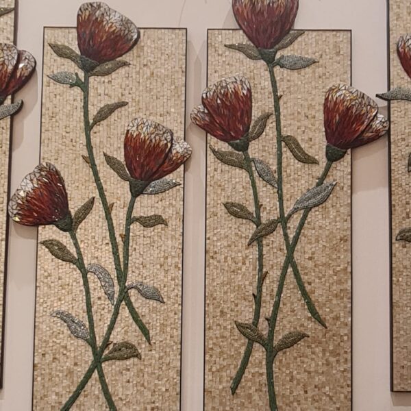 Mosaic art is an ancient art form that involves creating images or patterns by arranging small pieces of colored material, such as stone, glass, or ceramic, called tesserae or tiles. Mosaics have been used for thousands of years to decorate walls, ceilings, floors, and other surfaces. They have been found in various cultures across history, including Roman, Byzantine, Islamic, and Mediterranean societies. Mosaic art can be used to create intricate and detailed images, geometric patterns, or abstract designs. It is a versatile art form that has been used for decorative and functional purposes, and it continues to be a popular choice for artists and designers today.